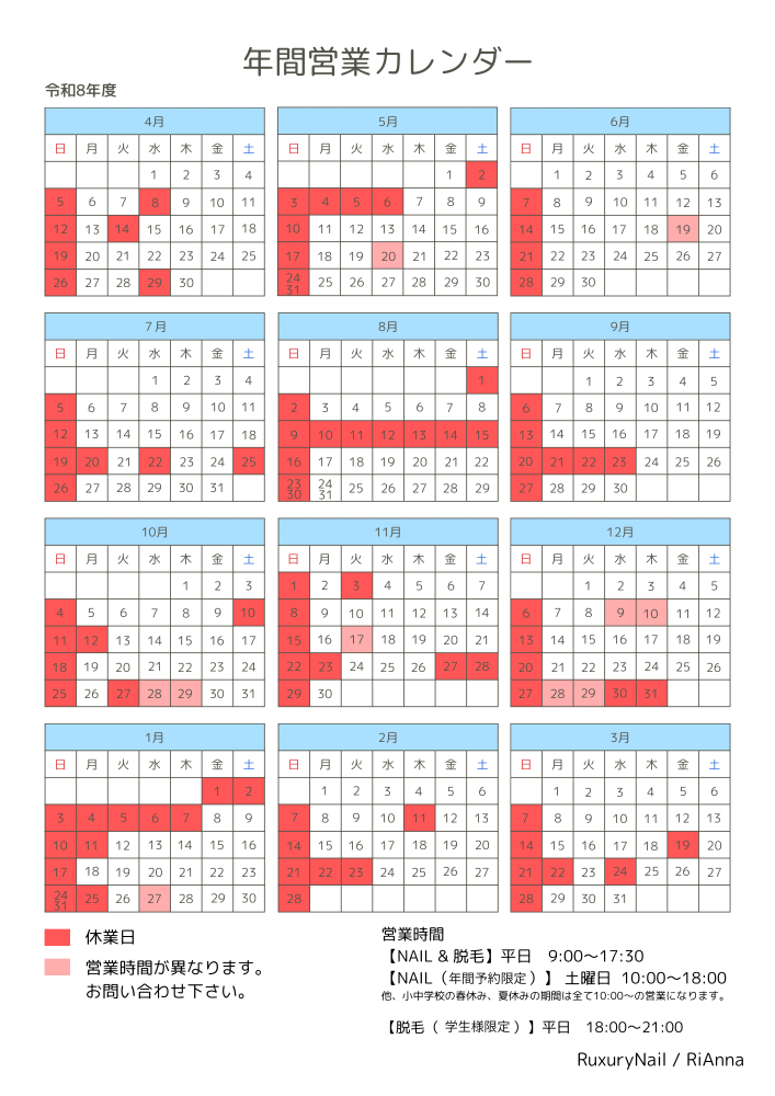 令和8年度4月からのご予約を3月1日9時より先着順でご予約承ります。