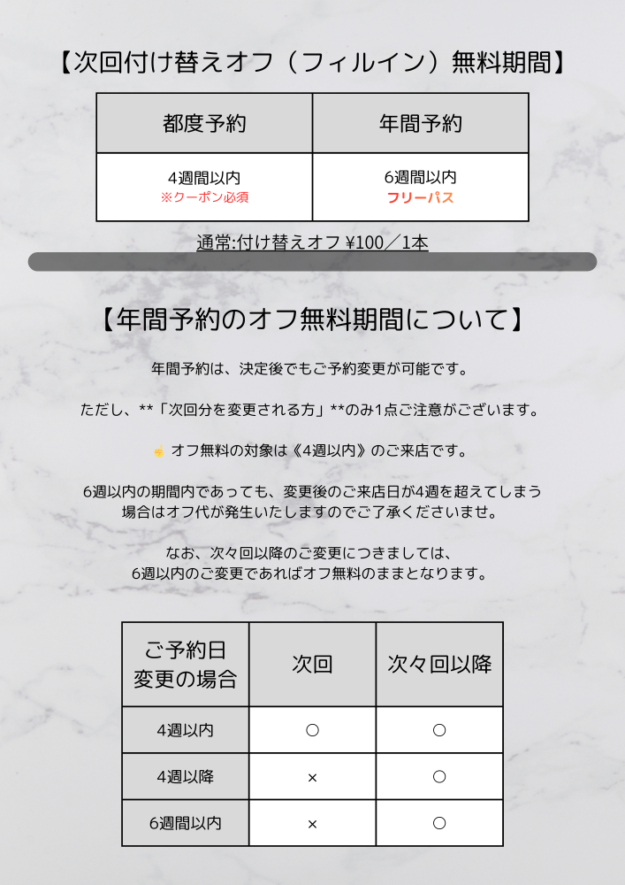 ①付け替えフィルイン 〜6週間★無料★